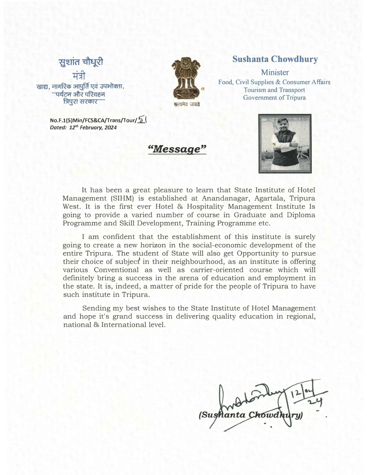 MESSAGE FROM TRIBAL WELFARE MINISTRE
